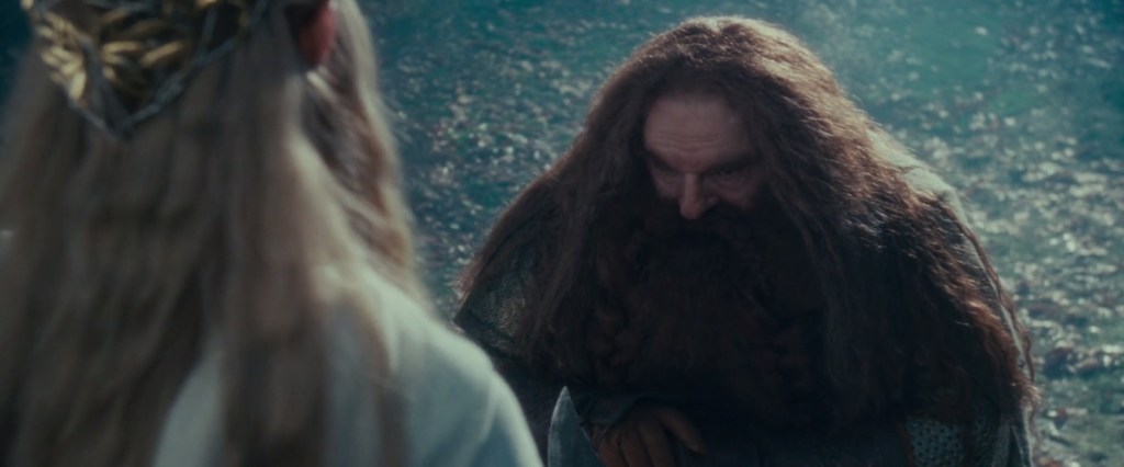 Gimli (que es la pareja perfecta de Legolas, pero ya se sabe) muestra una adoración sin reservas por la casada Galadriel. Por supuesto es un amor imposible, platónico.