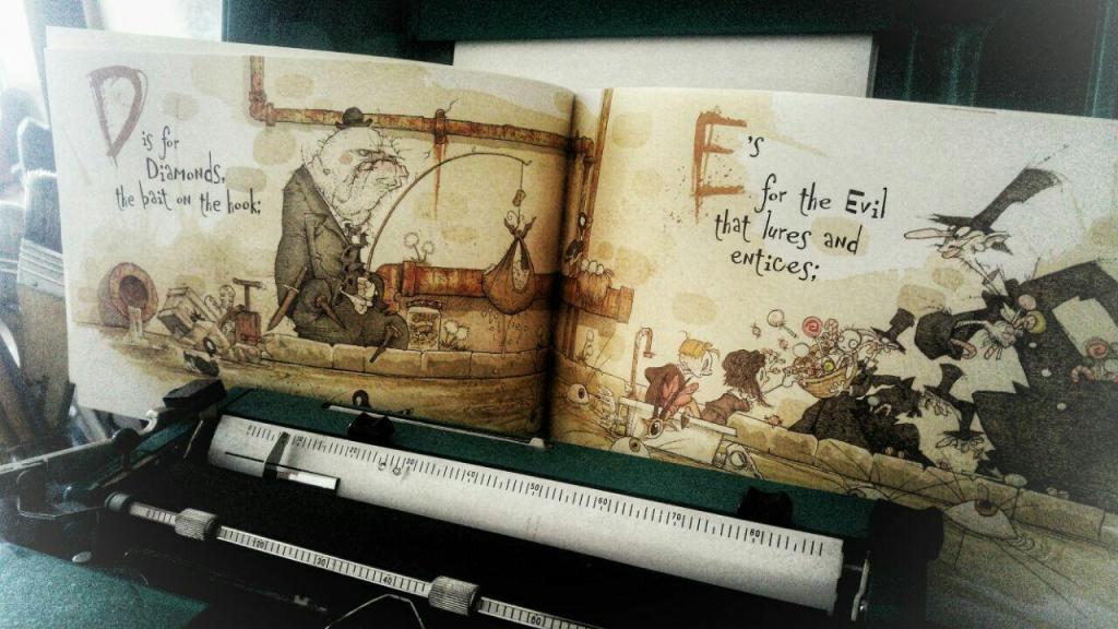 Neil Gaiman y Gris Grimly hacen equipo para presentarnos la historia de dos niños y su gazela y de cómo persiguen un tesoro en las cloacas de la ciudad. Está contada en el mismo número de páginas que el alfabeto (inglés) y sigue de manera clara la estela de los pequeños macabros de Edward Gorey.