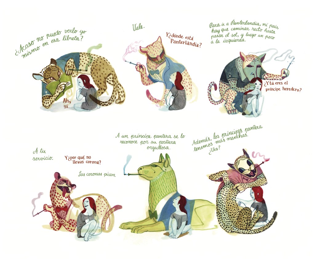 Una de sus particularidades es como decía esa especie de encierro. Cristina nunca puede viajar a Panterlandia porque Panterlandia, por supuesto, no existe. Es un cuento, un deseo. Así que su habitación, en su mente, empieza a convertirse en el lugar. Se mimetiza con la pantera. Esto es uno de los toques maestros de la historia porque al final de Alicia o de Peter Pan los protagonistas vuelven a casa y comienza el rito de paso hacia la edad adulta. Este nunca puede ser el caso de Cristina, no tiene ningún sitio al que volver y avanzar. Ya está en el lugar donde debería sentirse más segura del universo.