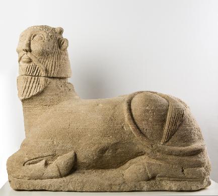 Según el mismo museo está realizada en bulto redondo en la mitad delantera y alto relieve en la posterior, con la cabeza esculpida en un bloque distinto al del cuerpo. La cabeza estaba coronada por unos cuernos que, desgraciadamente, no se conservan.