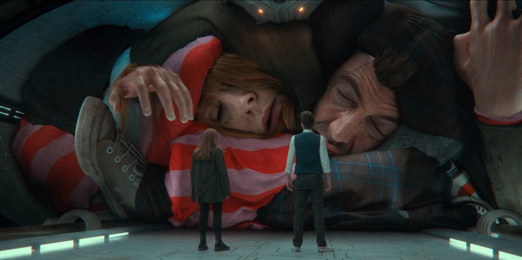 Todo trata de ir a cámara lenta. Pero algo que va despacio es la antítesis del Doctor de Tennant y de Donna. Ya han jugado antes con esto y aquí el guion lo hace genial. La escena de intentar dejar de pensar, él siendo incapaz de dejar su ego, la tensión. Corriendo de un lado a otro mientras el robot sigue a su propio ritmo. La de años que hace que la capitana de la nave murió y cómo ellos lo resuelven, sin embargo, en horas. Que la solución sea acelerar la destrucción.